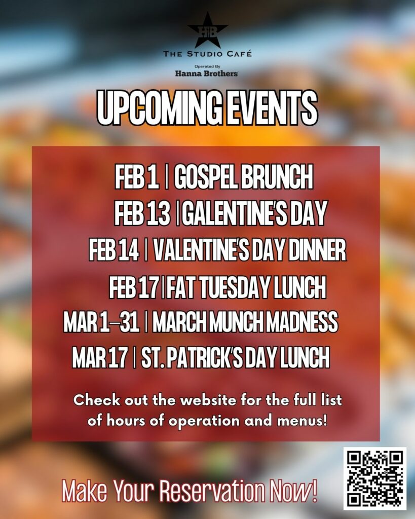 We’re super excited to share some awesome events happening at The Studio Cafe! Check out these amazing experiences below. The full January- March calendar will be live soon!